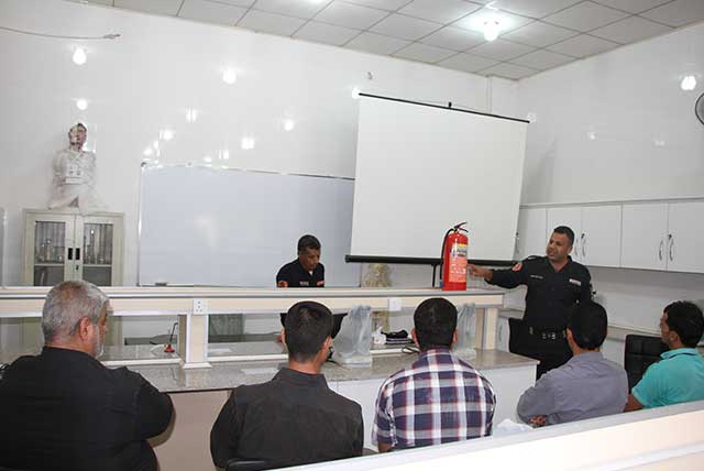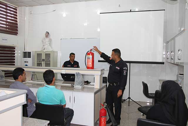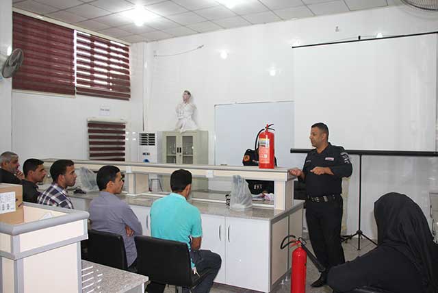 اقامت مديرية الدفاع المدني قاطع الحر دورة في الدفاع المدني لمنتسبي كلية الصيدلة في جامعتنا لتوضيح الطرق الفعالة للسيطرة على الحرائق المختلفة وكذلك اهم الارشادات في الاسعافات الاولية وقد القى المحاضرات كل من مفوض الدفاع المدني صلاح مهدي و مفوض الدفاع المدني محمد برش وبحضور السيد حيدر المعمار مسؤول الدفاع المدني في جامعة اهل البيت عليهم السلام .