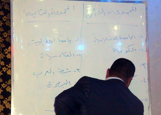 وعقد الاجتماع الفني للبطولة مساء يوم الأربعاء 27 / 3 / 2013 في منتجع ميسان السياحي بحضور كل من أ.م.د حميد فاضل مساعد رئيس جامعة ميسان للشؤون العلمية و أ.د مجيد جاسب حسين عميد كلية التربية الرياضية جامعة ميسان و أ.م . د احمد مهدي شلش مدير الرياضة الجامعية جامعة ميسان والأستاذ احمد عبد الجبار حسين من قسم الرياضة الجامعية / الإشراف والتقويم العلمي ممثلا عن وزارة التعليم العالي والبحث العلمي , وقسمت الفرق إلى مجموعتين كل مجموعة 5 فرق تلعب بطريقة الدوري لمرحلة واحدة وضمت مجموعتنا فرق جامعات البصرة وشط العرب والقادسية وبابل .