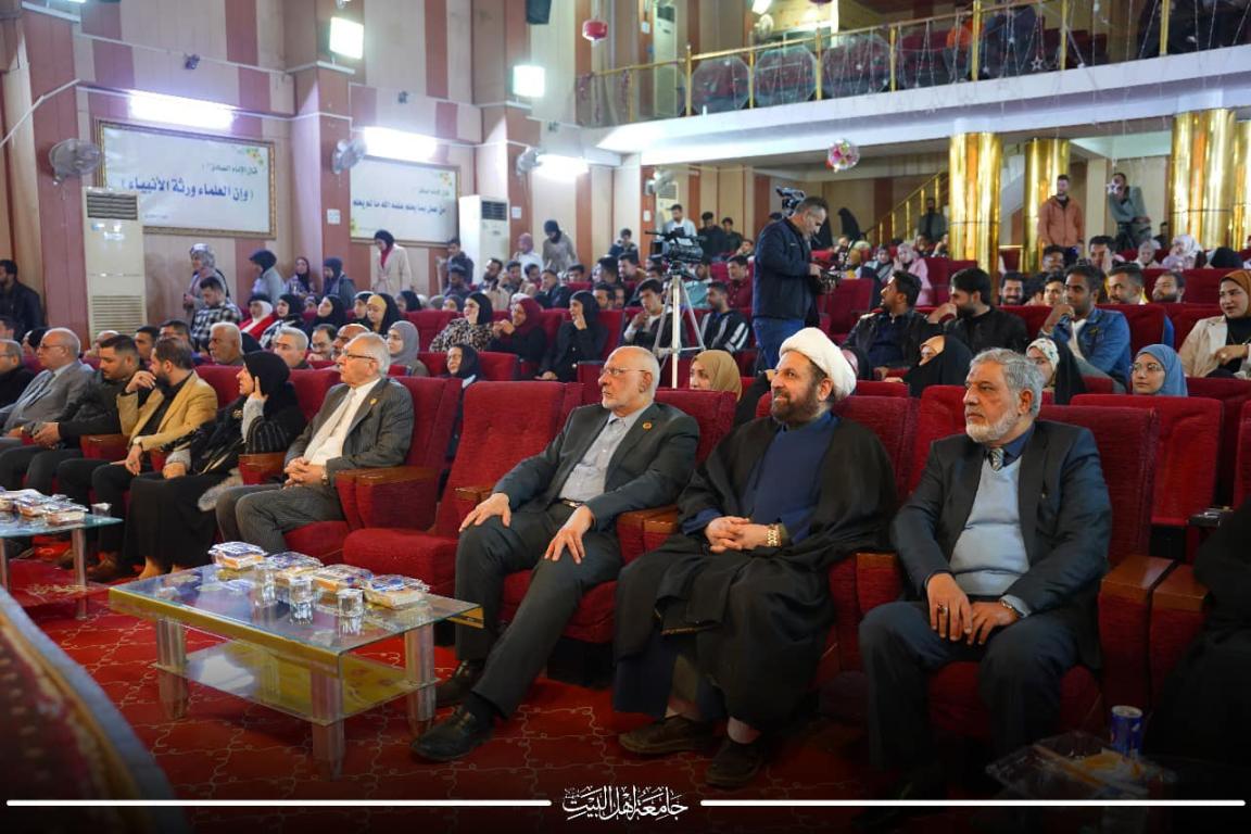 اقامت جامعة اهل البيت عليهم السلام حفلا ثقافيا بهيا بمناسبة ذكرى ولادة سيد الشهداء الامام الحسين عليه السلام وقد قدم مجموعة من الطلبة والاساتذة استعراضا تخللته الأهازيج والانشايد في باحة الجامعة في ذكرى الولادة الميمونه بعدها توجه المدعوون الى قاعة الاحتفالات الكبرى في الجامعه ليبدأ الحفل بتلاوة آيات بينات من الذكر الحكيم ،تلاها الطالب مصطفى جار الله من المرحلة الخامسة في كلية طب الاسنان بعدها وقف الحاضرون لتلاوة سورة المباركة الفاتحة ترحما على ارواح شهداء الامة الاسلامية وشهداء العراق كافة ،ثم ردد الحاضرون النشيد الوطني العراقي ،،بعدها القى الاستاذ صادق القزويني مدير الاعلام قصيدة شعرية في ذكرى ولادة الامام الحسين عليه السلام