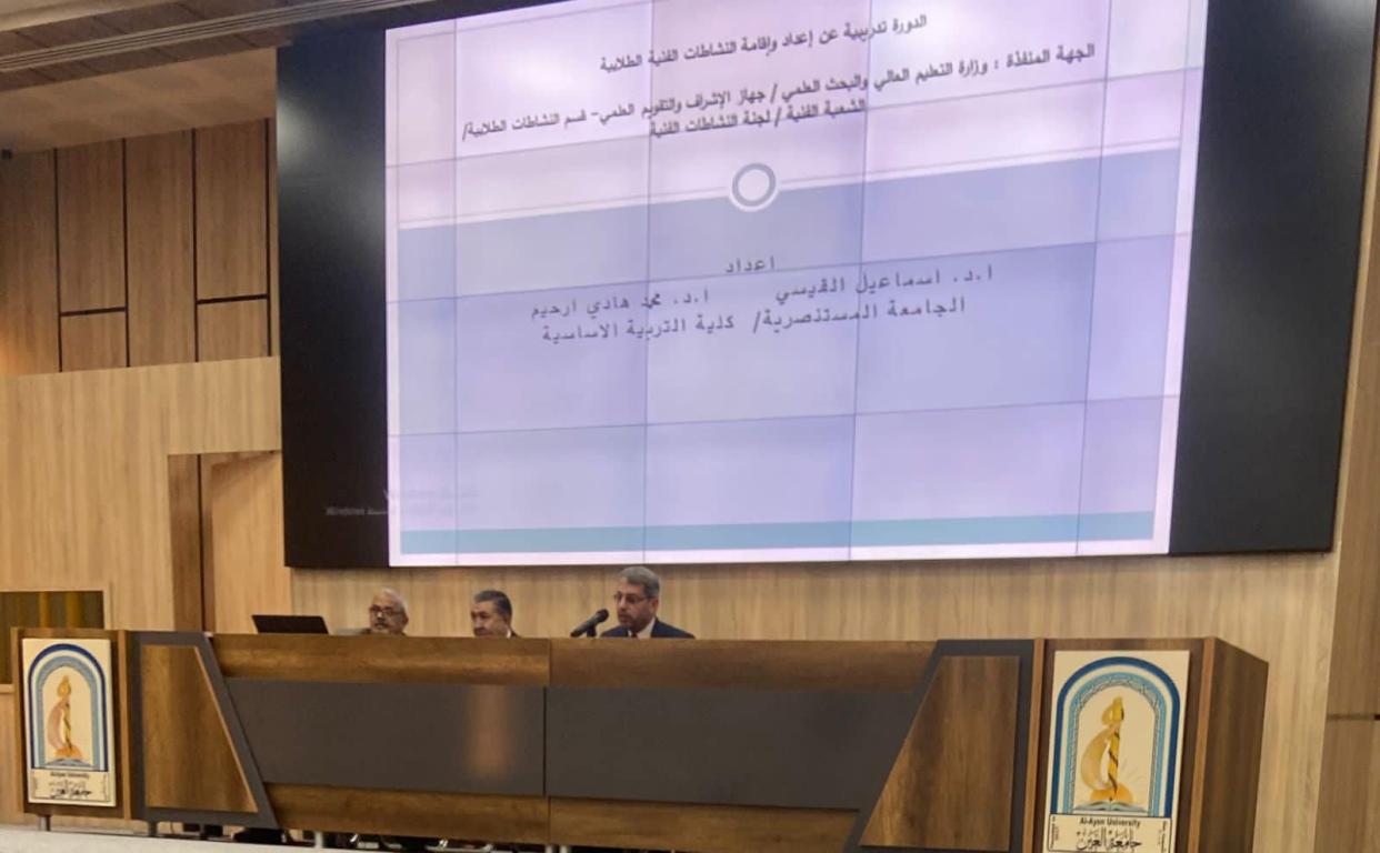 استمرار فعاليات الدورة التطويرية لمهارات المشاركة في النشاطات الفنية حيث تمت هذا اليوم الثلاثاء المصادف 2023/11/1 مناقشة سبل المشاركة في مهرجان الفيلم القصير مع كافة المحاور المتعلقة بالموضوع من كتابة النص الى الانتاج والاخراج واختيار كوادر العمل مع الممثلين والقى المحاضرات كل من أ.د اسماعيل القيسي وأ.د محمد هادي رحيم والاستاذ حسين العكيلي باشراف وادارة أ.د فراس الكناني مدير لجنة النشاطات الفنية في الشعبة الفنية في قسم النشاطات الطلابيه في جهاز الاشراف والتقويم العلمي في وزارة التعليم العالي والبحث العلمي