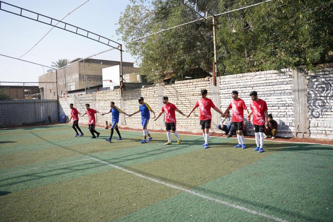 بعدها توجه الوفد الى الساحة الرياضية حيث جرت فعاليات عديدة قدمها لاعبوا واداريوا المنتخب ،اختتمت بتكريم الكادر الادراي واللاعبين كافه، وحضر اللقاء الاستاذ حيدر المعمار مدير قسم النشاطات الطلابية وتضمن وفد منتخب العراق لكرة قدم المكفوفين : -
