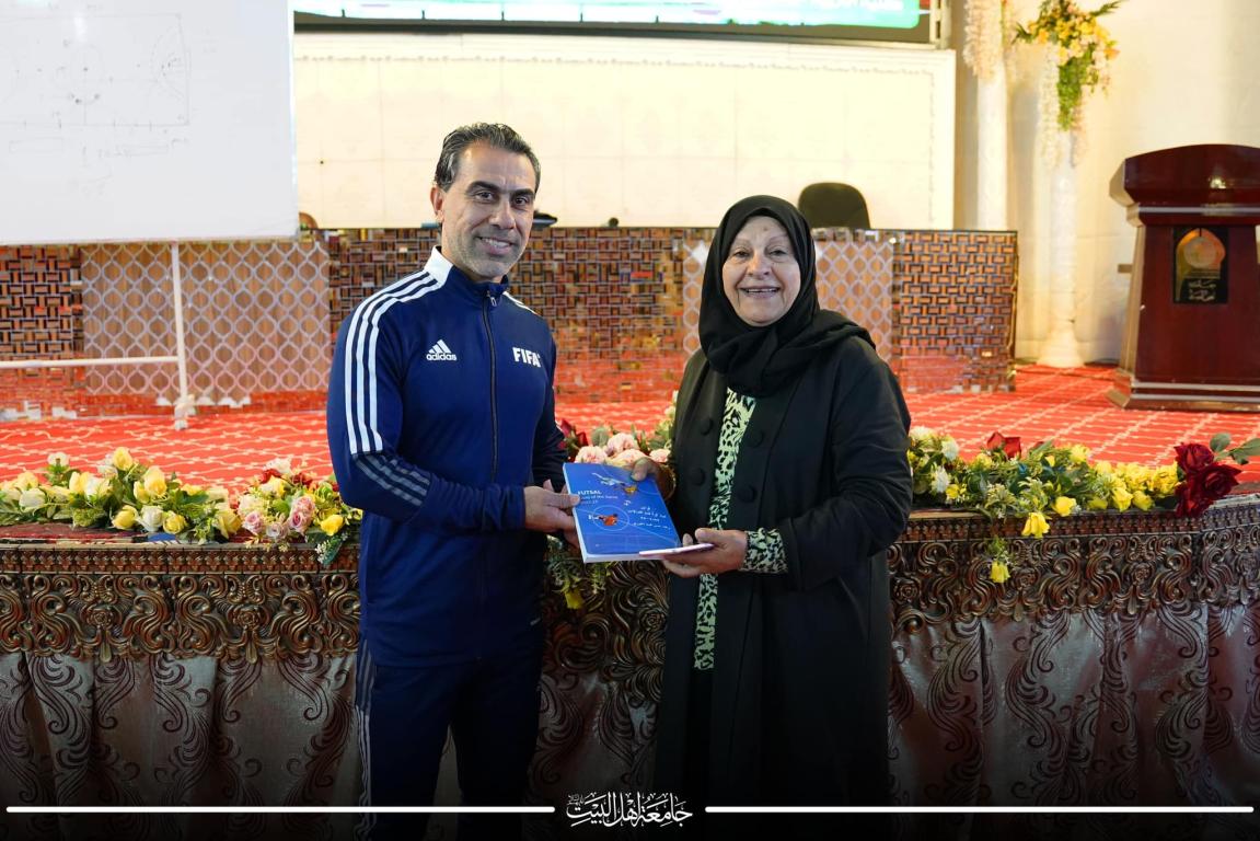 نظمت كلية التربية البدنية وعلوم الرياضة في الجامعة و بالتعاون مع قسم النشاطات الطلابية محاضره علمية بعنوان( التطورات الحديثة في قانون كرة القدم للصالات ) حاضر فيها الحكم الدولي الاستاذ علي فاروق قاسم ، وبحضور عميد كلية التربية البدنية وعلوم الرياضة الاستاذ الدكتور رابحه الرماحي و بمشاركة نخبة من اساتذة الكلية وحضور الاستاذ حيدر المعمار مدير قسم النشاطات الطلابية وطلبة الجامعة من مختلف الكليات على القاعة المركزية في الجامعة